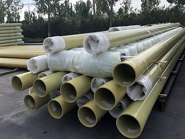 Fiberglass pipe is lighter, non-conductive, and corrosion-resistant, reducing installation costs and time. It has a Class 1 fire rating and UV inhibitors for sun protection and color stability.
